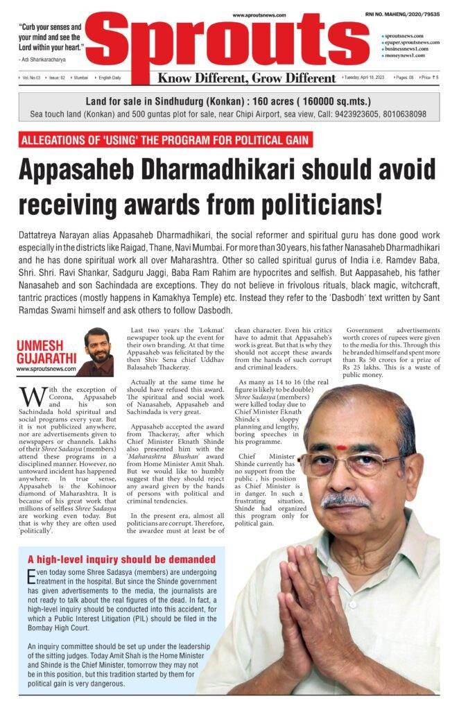 मात्र त्यामुळेच त्यांनी अशा महाभ्रष्ट पुढाऱ्यांच्या हस्ते हे पुरस्कार स्वीकारू नयेत, असे ‘स्प्राऊट्स’च्या टीमचे मत आहे.