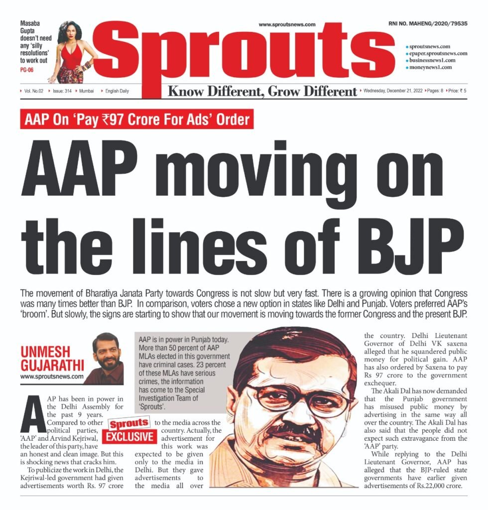 भारतीय जनता पक्षाची वाटचाल ही हळूहळू नव्हे तर फारच वेगाने काँग्रेसकडे चालू आहे. भाजपपेक्षा काँग्रेस कैकपटीने चांगली होती, असा मतप्रवाह वाढत चालला आहे. यातुलनेत मतदारांनी दिल्ली, पंजाबसारख्या राज्यांत नवा पर्याय निवडला. ‘आप’च्या झाडूला मतदारांनी पसंती दिली. मात्र हळूहळू आपची वाटचालही पूर्वीच्या काँग्रेस व आताच्या भाजपकडे जावू लागल्याची चिन्हे दिसू लागत आहेत.