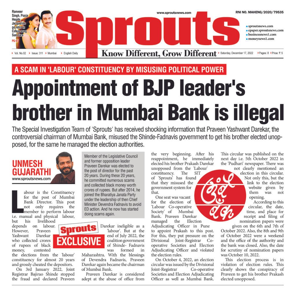 प्रवीण दरेकर हे पहिल्यापासूनच पदाचा दुरुपयोग करण्यात ‘प्रवीण’ मानले जातात. त्यांची पुनर्नियुक्ती झाल्यानंतर त्यांनी तात्काळ त्यांचे बंधू प्रकाश दरेकर यांची ‘मजूर’ मतदारसंघातून बिनविरोध निवड केली. त्यासाठी त्यांनी सरकारी यंत्रणेचा दुरुपयोग केल्याचे ‘स्प्राऊट्स’च्या टीमला आढळून आले आहे.