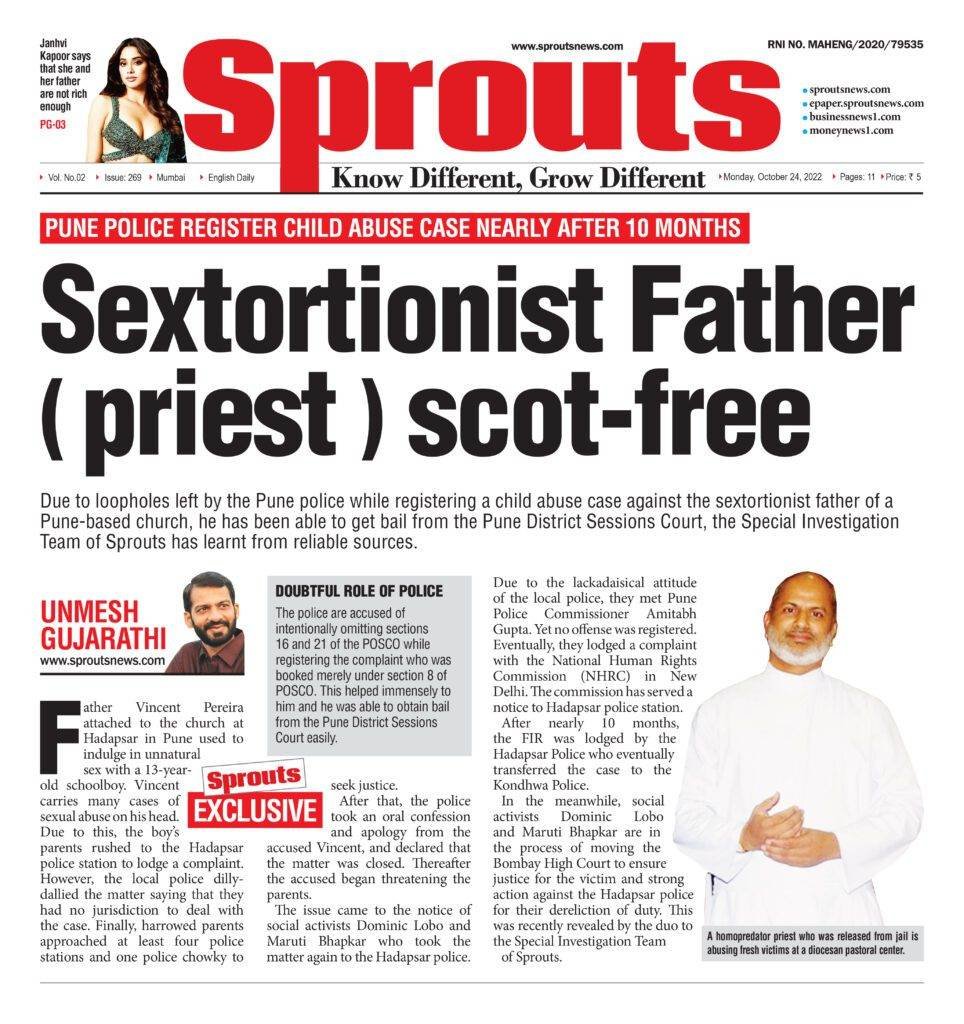‘पॉस्को’ कायद्यांतर्गत गुन्हा नोंद करताना पोलिसांनी जाणीवपूर्वक त्रुटी ठेवल्या व त्यामुळेच लिंगपिसाट फादरला पुणे जिल्हा सेशन न्यायालयाने जामीन दिल्याची दुर्दैवी घटना घडली,अशी धक्कादायक बाब ‘स्प्राऊट्स’च्या हाती आलेली आहे.