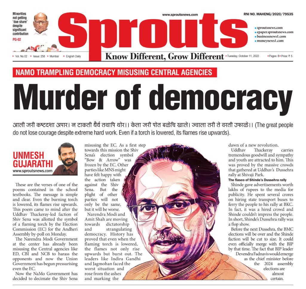 याच निवडणूक आयोगाचा गैरवापर करून नरेंद्र मोदी सरकारने शिवसेनेला संपविण्याचा विडा उचललेला आहे. त्याचे पहिले पाऊल म्हणून त्यांनी’शिवसेना’ हे मूळ नाव व ‘धनुष्यबाण’ चिन्हही गोठवले. त्यामुळे राज्यातील महाराष्ट्र नवनिर्माण सेनेसारख्या इतर पक्षांतील कार्यकर्ते आनंदित झाले असतील, मात्र भाजपकडून त्यांची अवस्था ही यापेक्षाही भयानक होणार आहे.