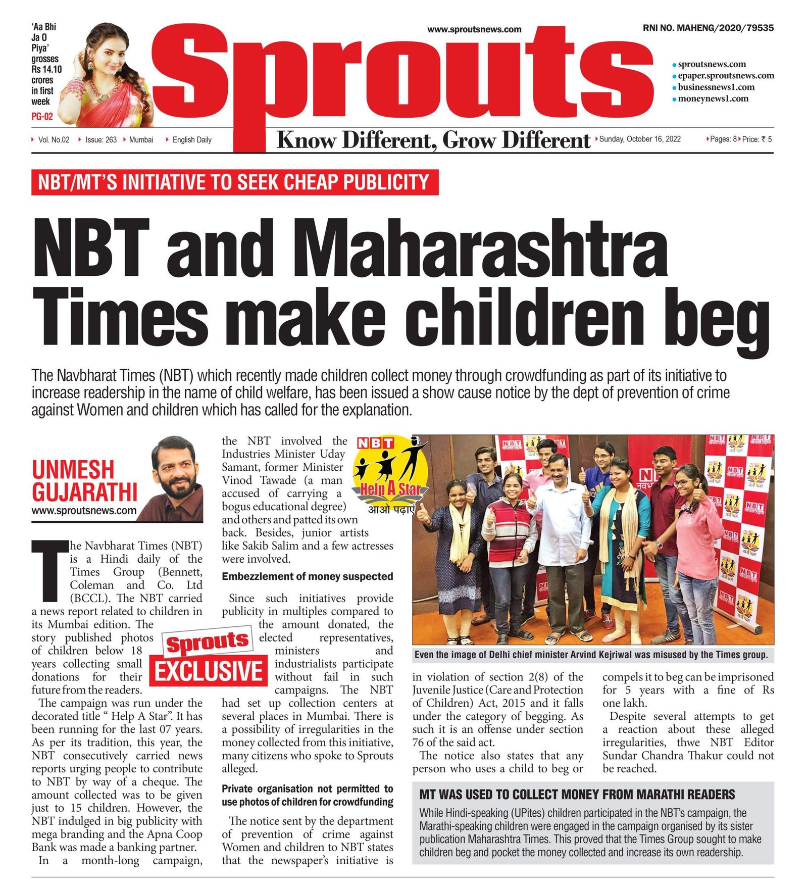 सवंग प्रसिद्धी व सामाजिक बांधिलकी दाखवण्याचा ढोंगीपणा, नवभारत टाइम्स या वृत्तपत्राच्या चांगलाच अंगलट आलेला आहे. मुलांना क्राउड फंडिंगद्वारे भीक मागायला लावणे, हा गुन्हा आहे, अशी चक्क नोटीसही टाइम्स प्रशासनाला महाराष्ट्र सरकारच्या महिला व बाल अपराध प्रतिबंधक विभागाने बजावलेली आहे.