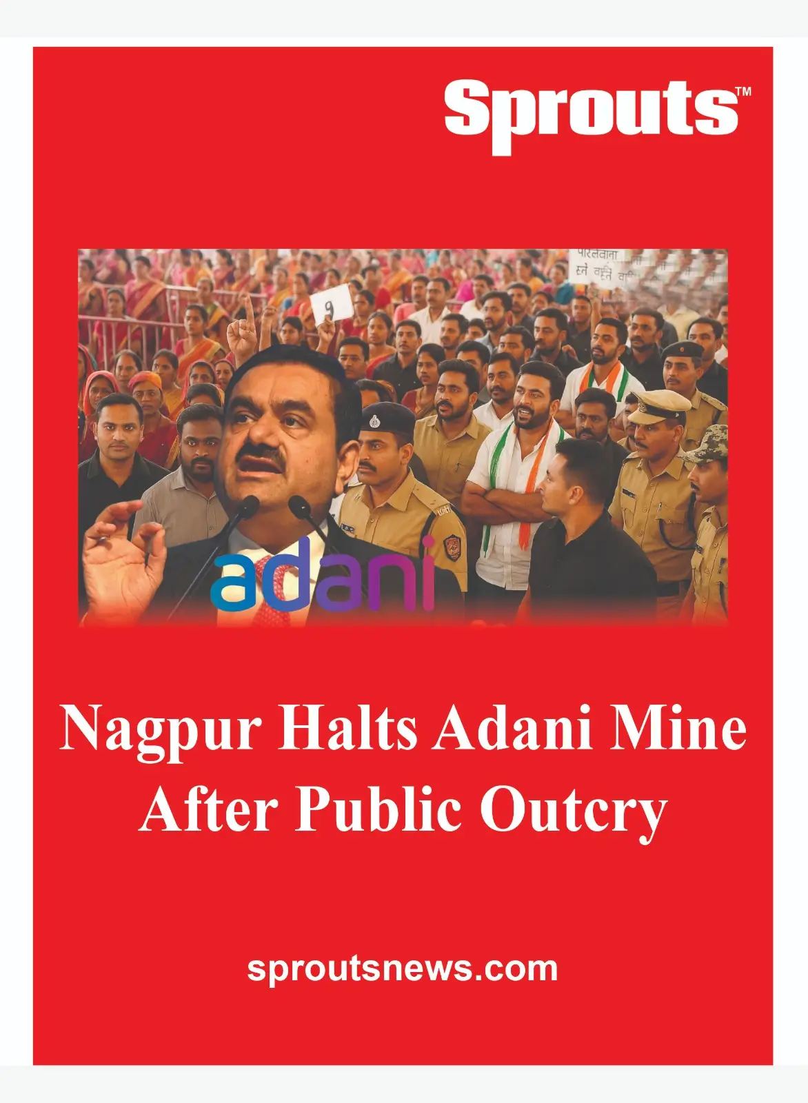 A public hearing for Adani’s Ambuja Cement coal mine in Nagpur was suspended due to massive protests. Villagers and opposing BJP/Congress leaders fear severe water pollution and ecological damage from the underground project.