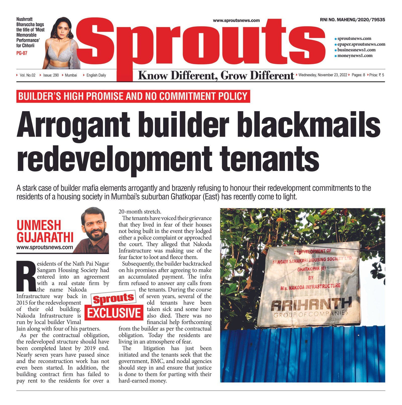 The tenants have voiced their grievance that they lived in fear of their houses not being built in the event they lodged either a police complaint or approached the court. They alleged that Nakoda Infrastructure was making use of the fear factor to loot and fleece them.