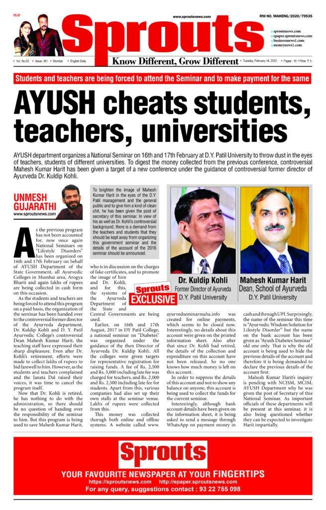 आयुष विभाग (AYUSH department) 16 व 17 फरवरी को डी वाई पाटिल विश्वविद्यालय (D.Y. Patil University) में राष्ट्रीय सेमिनार (National Seminar) का आयोजनकर विभिन्न विश्वविद्यालयों के शिक्षकों, छात्रों की आंखों में धूल झोंक रहा है.