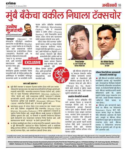 मुंबै बँकेचा वकील निघाला टॅक्सचोर