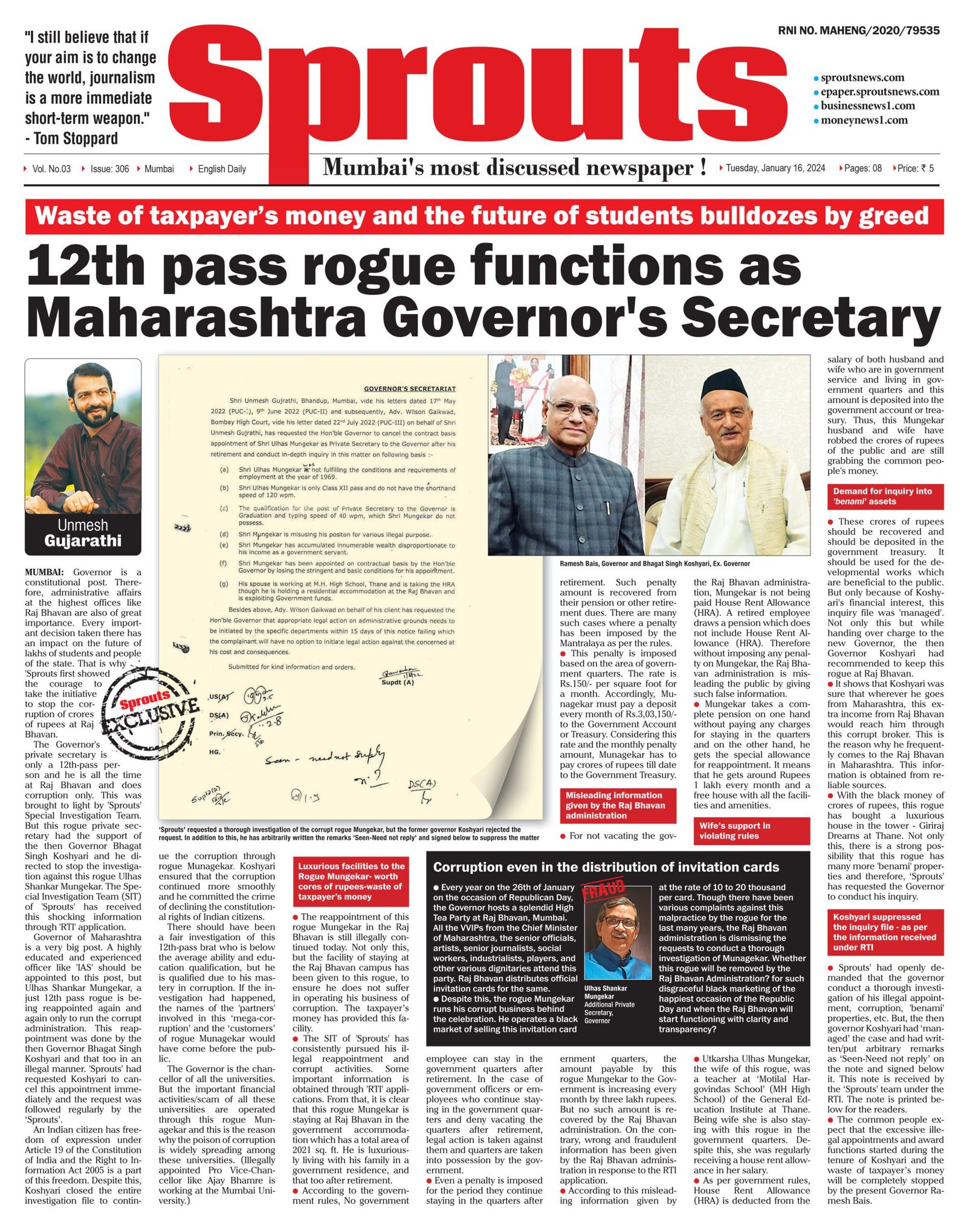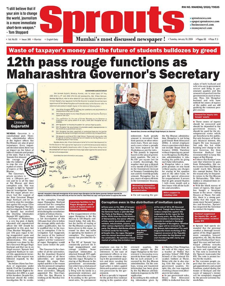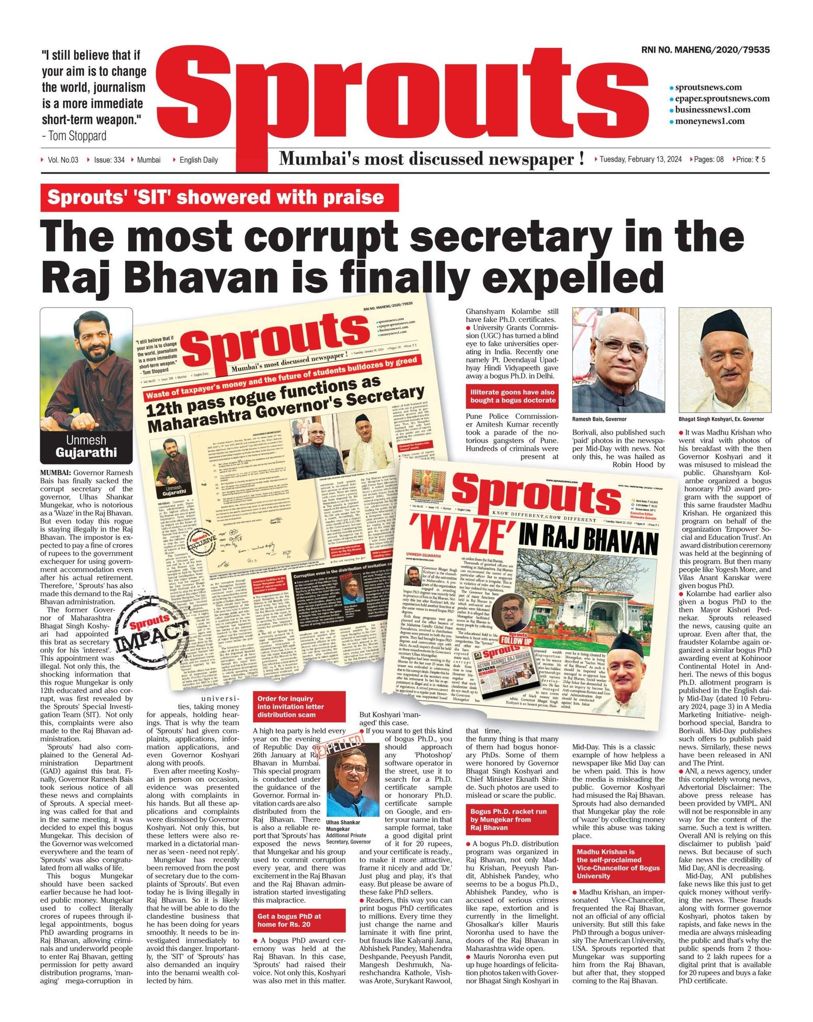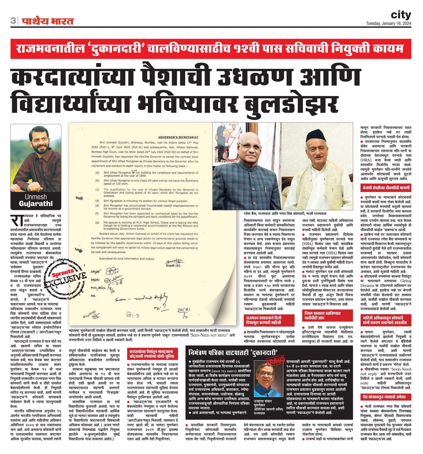 राजभवनातील 'दुकानदारी' चालविण्यासाठीच १२वी पास सचिवाची नियुक्ती कायम उन्मेष गुजराथीस्प्राऊट्स Exclusive राज्यपाल…