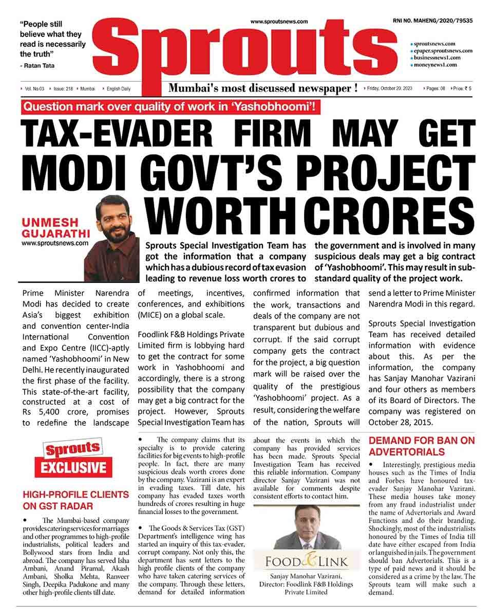 उन्मेष गुजराथीस्प्राऊट्स Exclusive कोट्यवधी रुपयांचा महसूल बुडवणाऱ्या व कायम संशयास्पद व्यवहार करणाऱ्या…