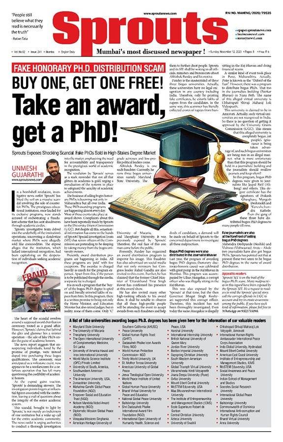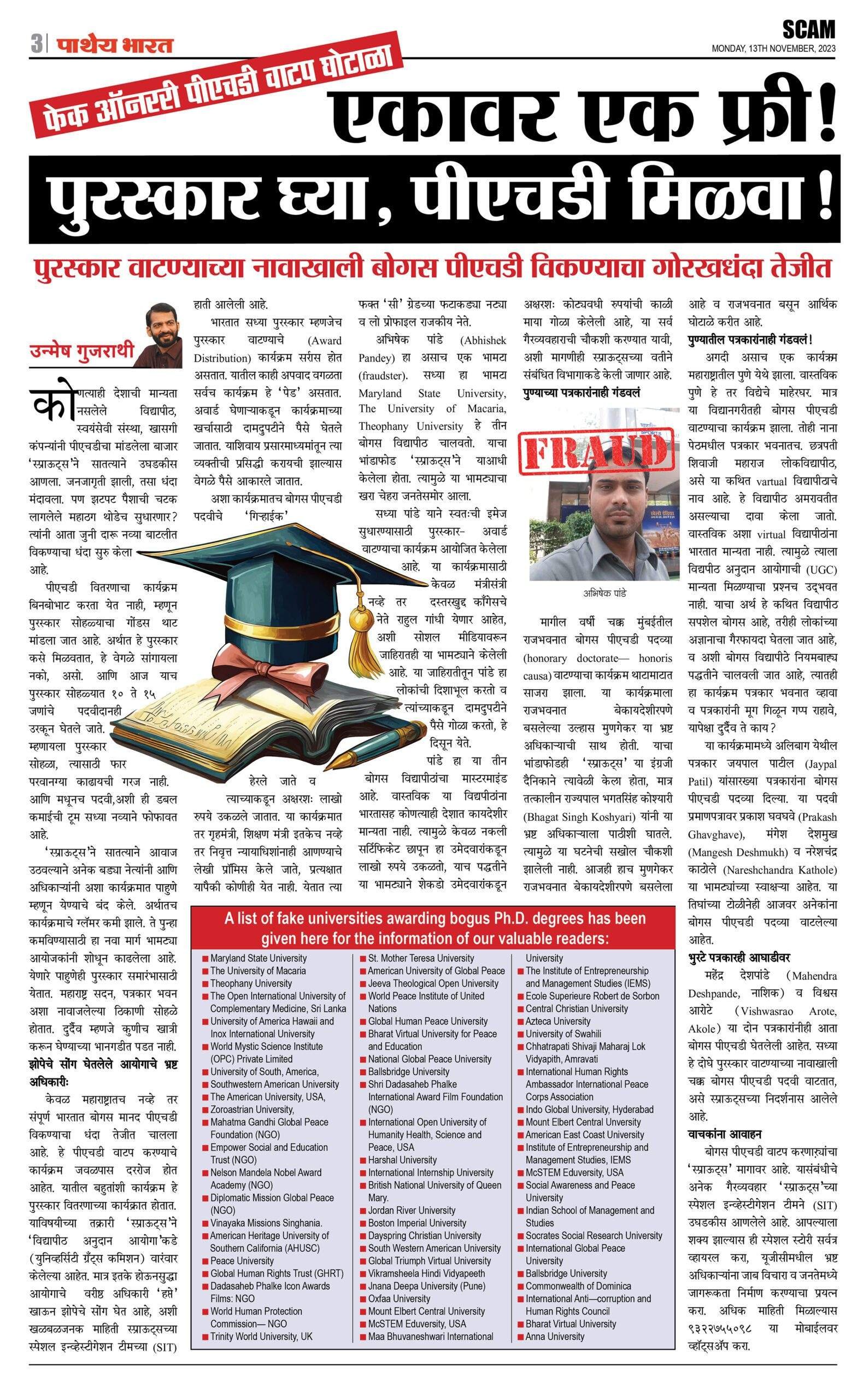 पुरस्कार घ्या, पीएचडी मिळवा ! फेक ऑनररी पीएचडी वाटप घोटाळा उन्मेष गुजराथी …
