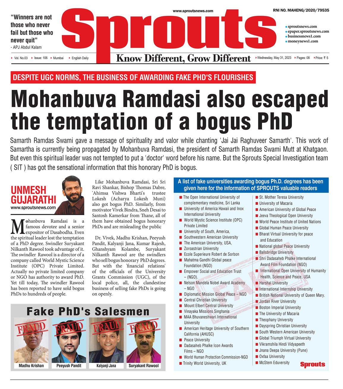 मोहनबुवा रामदासी यांनाही सुटला बोगस पीएचडीचा मोह
