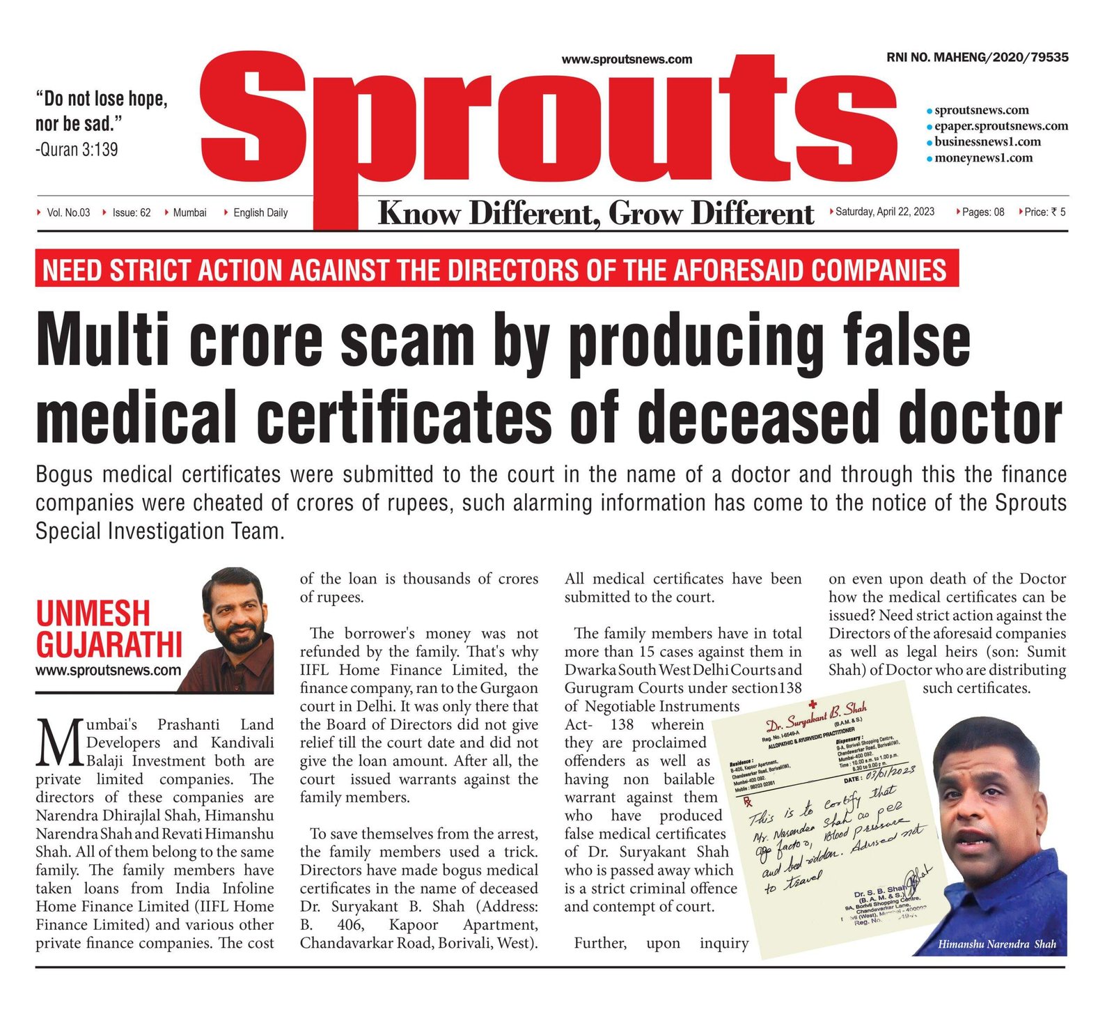 मृत डॉक्टरच्या नावाने मेडिकल सर्टिफिकेट बनवून केला न्यायालयाचा अवमान