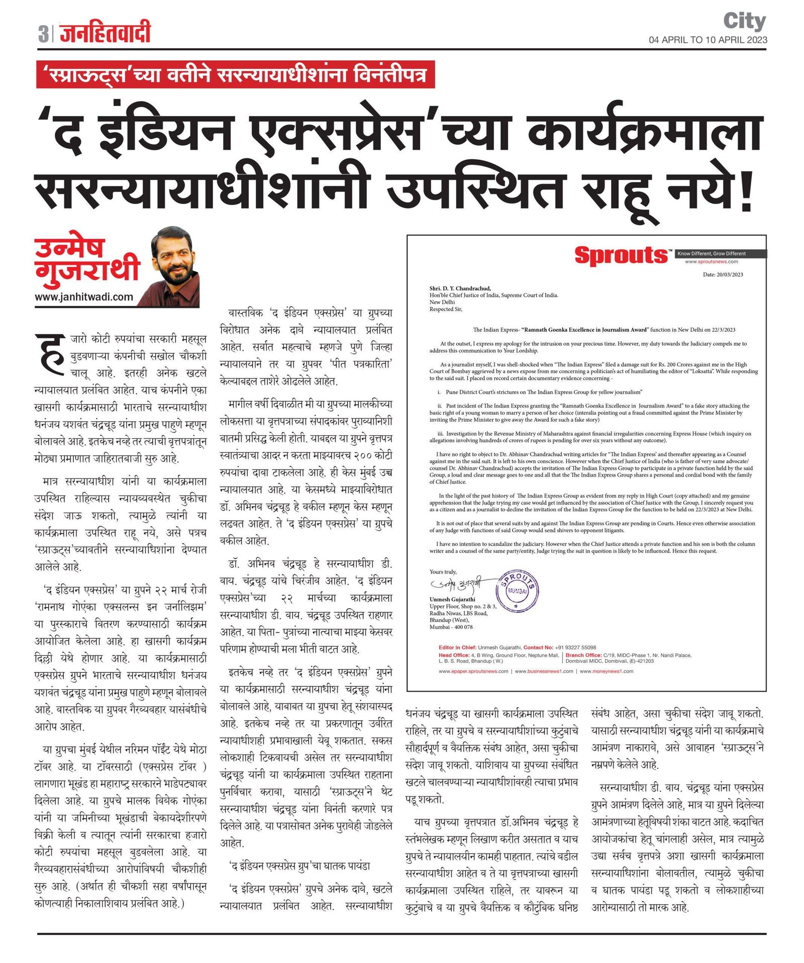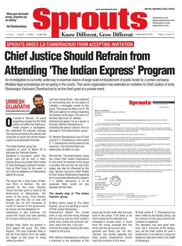 'स्प्राऊट्स'च्या वतीने सरन्यायाधीशांना विनंतीपत्र Unmesh Gujarathi,Sprouts News #exclusive हजारो कोटी रुपयांचा सरकारी…
