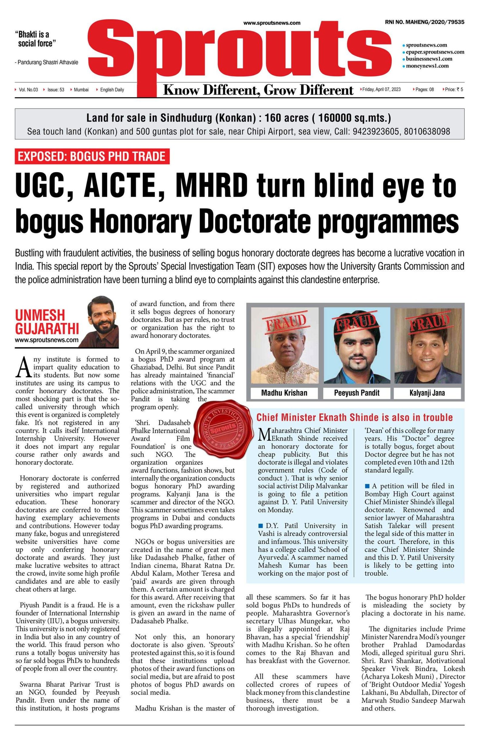 Exposed: Bogus PhD Trade. Unmesh GujarathiSprouts Exclusive Bustling with fraudulent activities, the…
