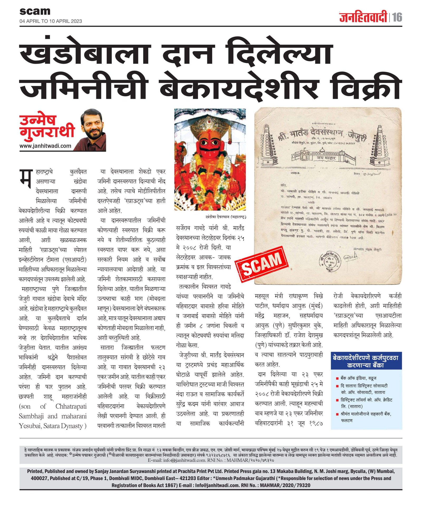 खंडोबाला दान दिलेल्या जमिनीची बेकायदेशीर विक्री