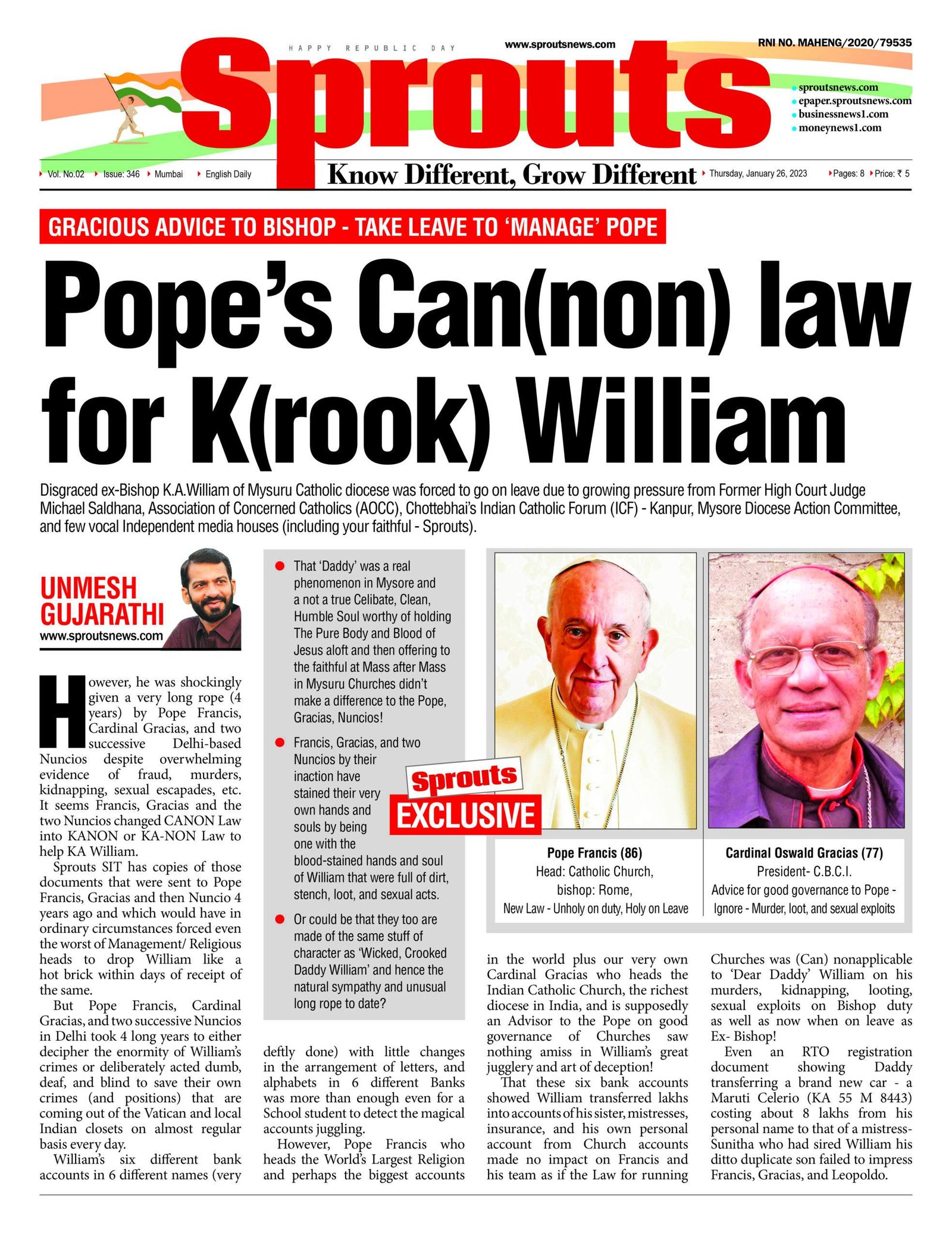 Gracious advice to Bishop - Take Leave to ‘manage’ Pope Unmesh Gujarathiwww.sproutsnews.com…