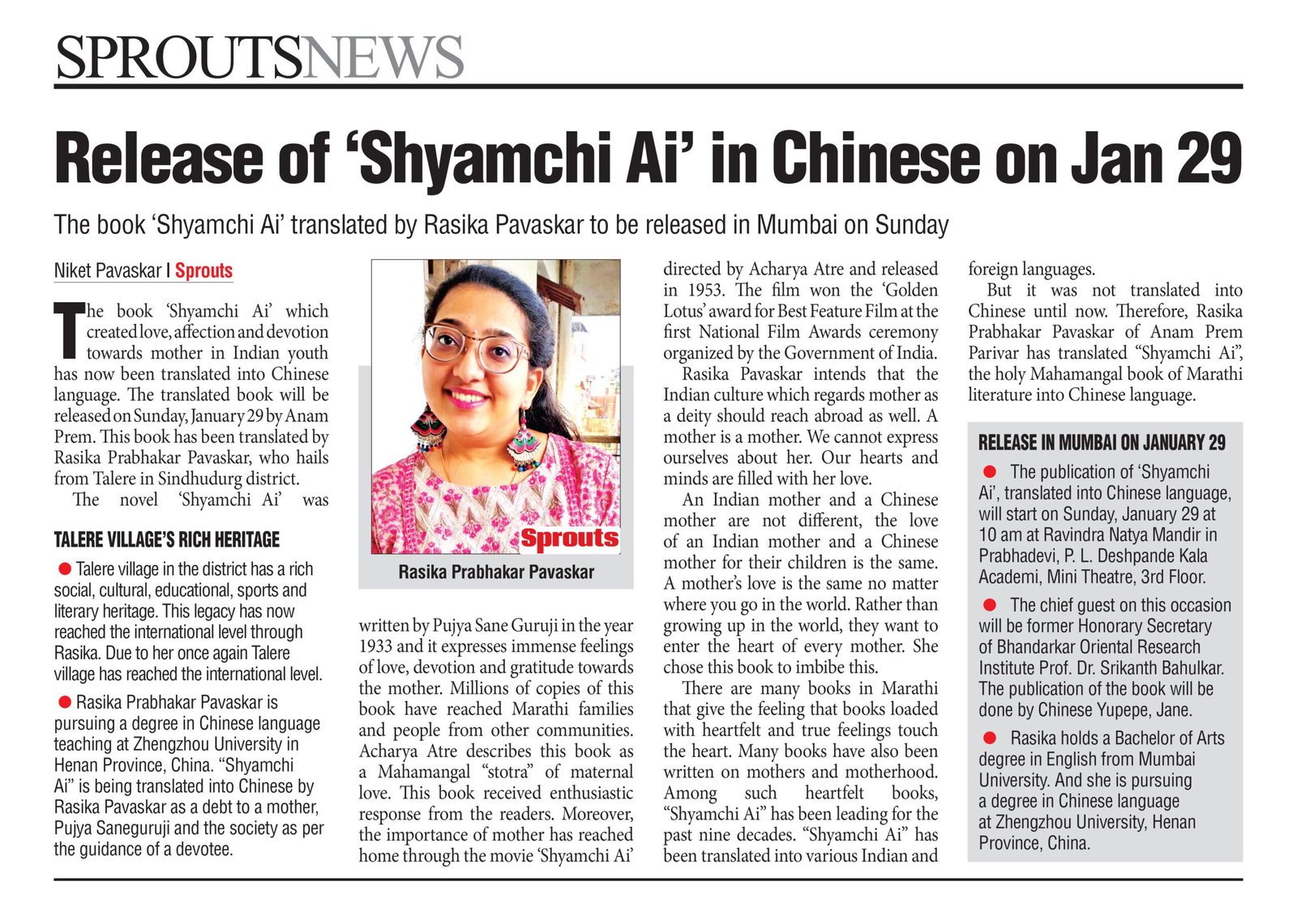 Release of ‘Shyamchi Ai’ in Chinese on Jan 29