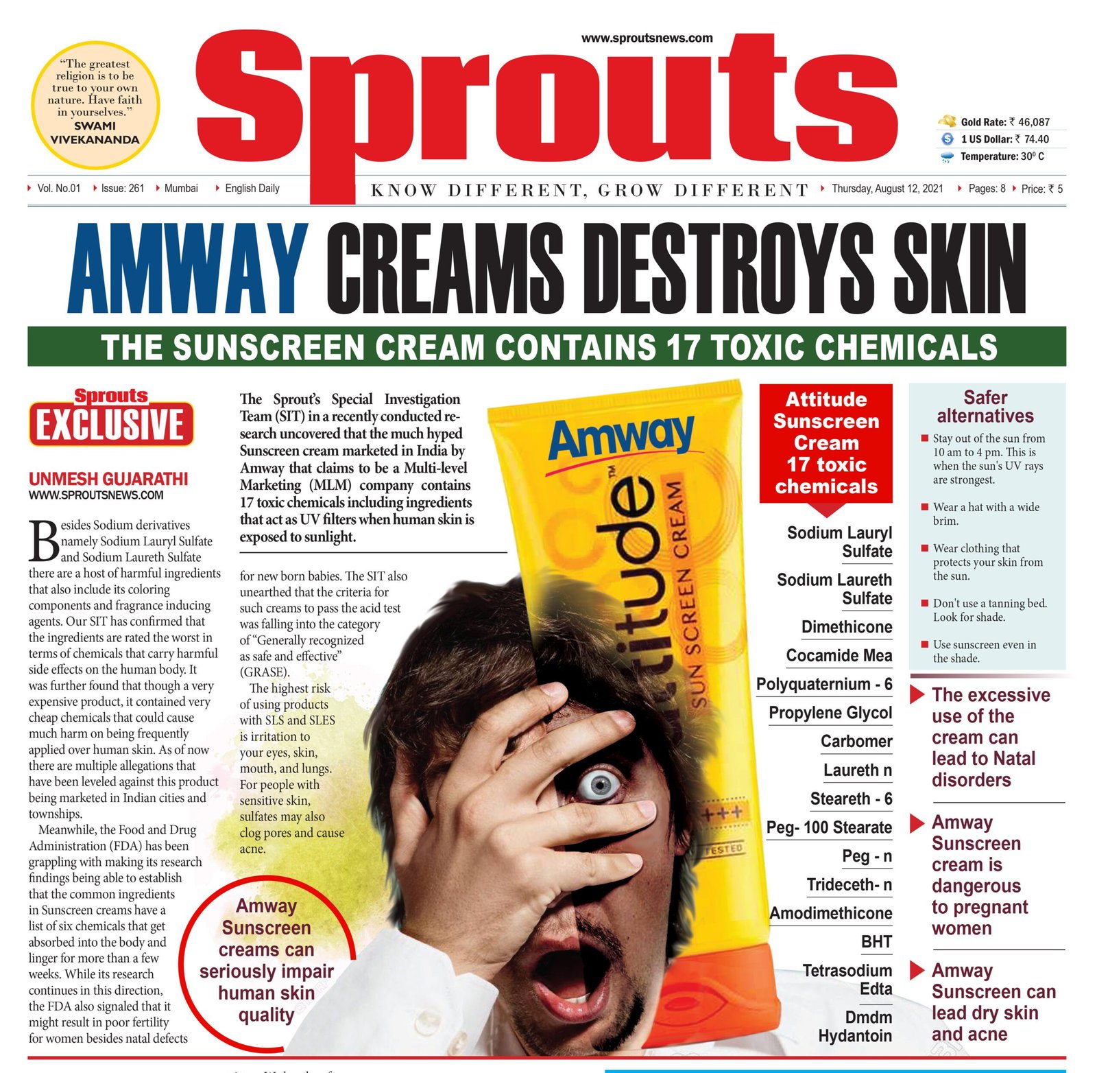 मानव त्वचा की गुणवत्ता को गंभीर रूप से खराब कर सकती हैं एमवे की सनस्क्रीन क्रीम