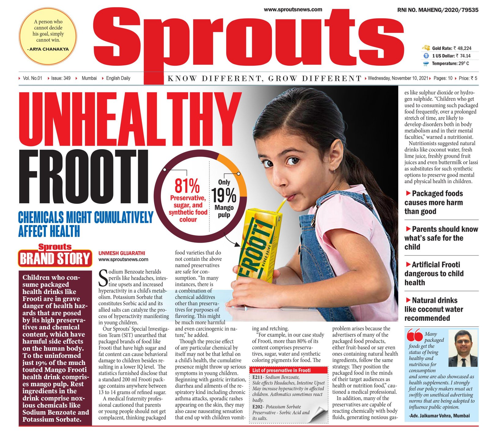 UNMESH GUJARATHI SPROUTS BRAND STORY Children who consume packaged health drinks like Frooti…