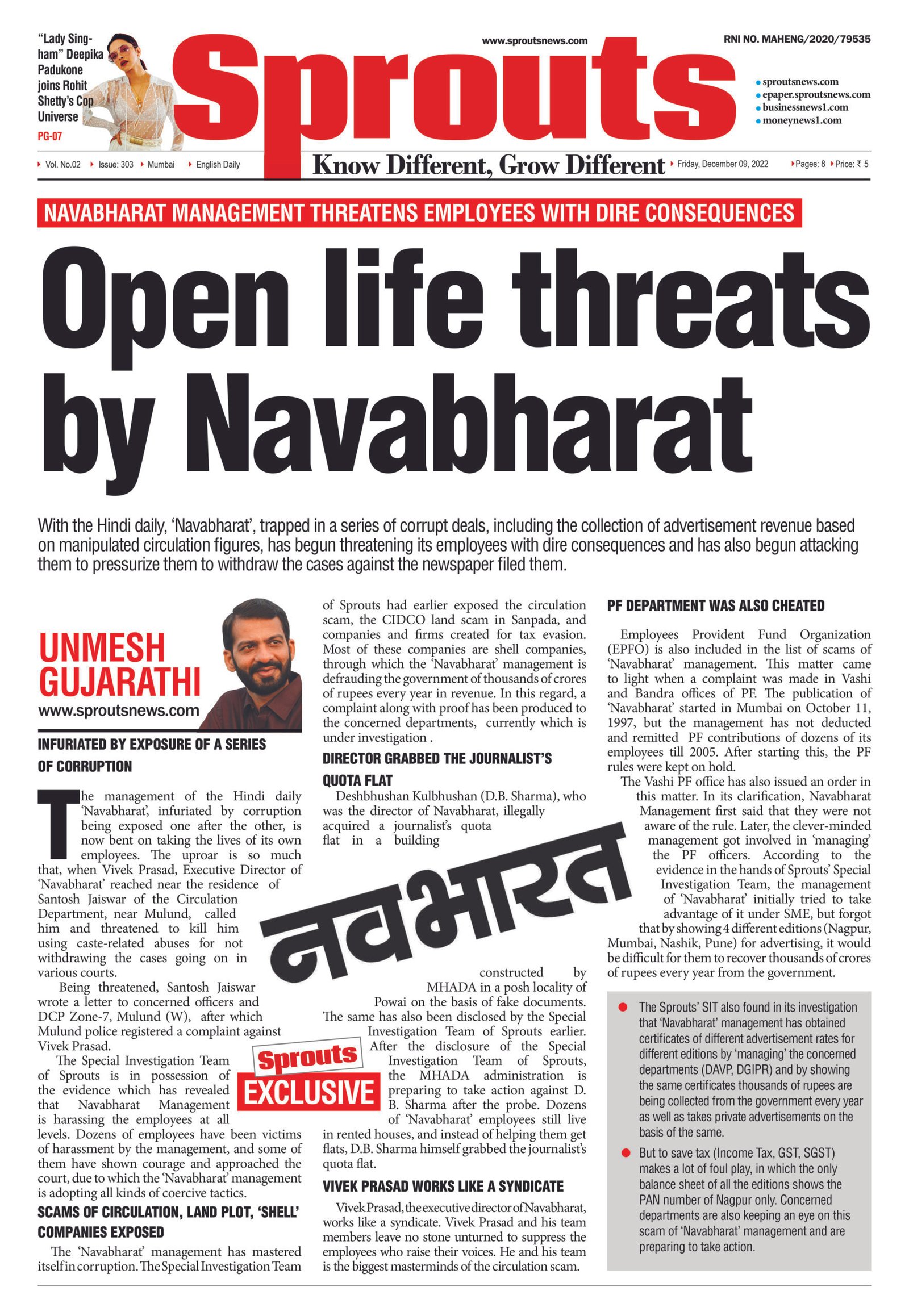 अब ‘लाइफ थ्रेट’ पर उतरा ‘नवभारत’ मैनेजमेंट