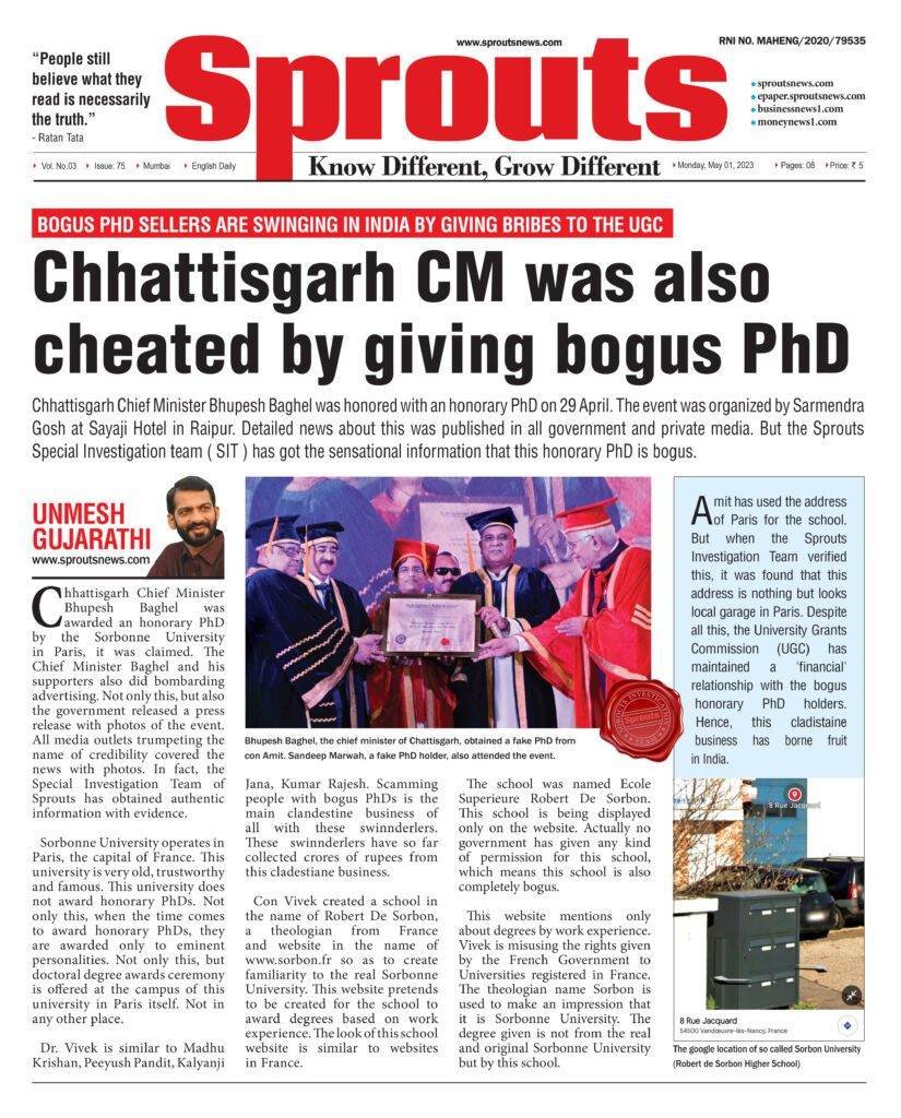 Chhattisgarh Chief Minister Bhupesh Baghel was awarded an honorary PhD by the Sorbonne University in Paris, it was claimed. The Chief Minister Baghel and his supporters also did bombarding advertising.