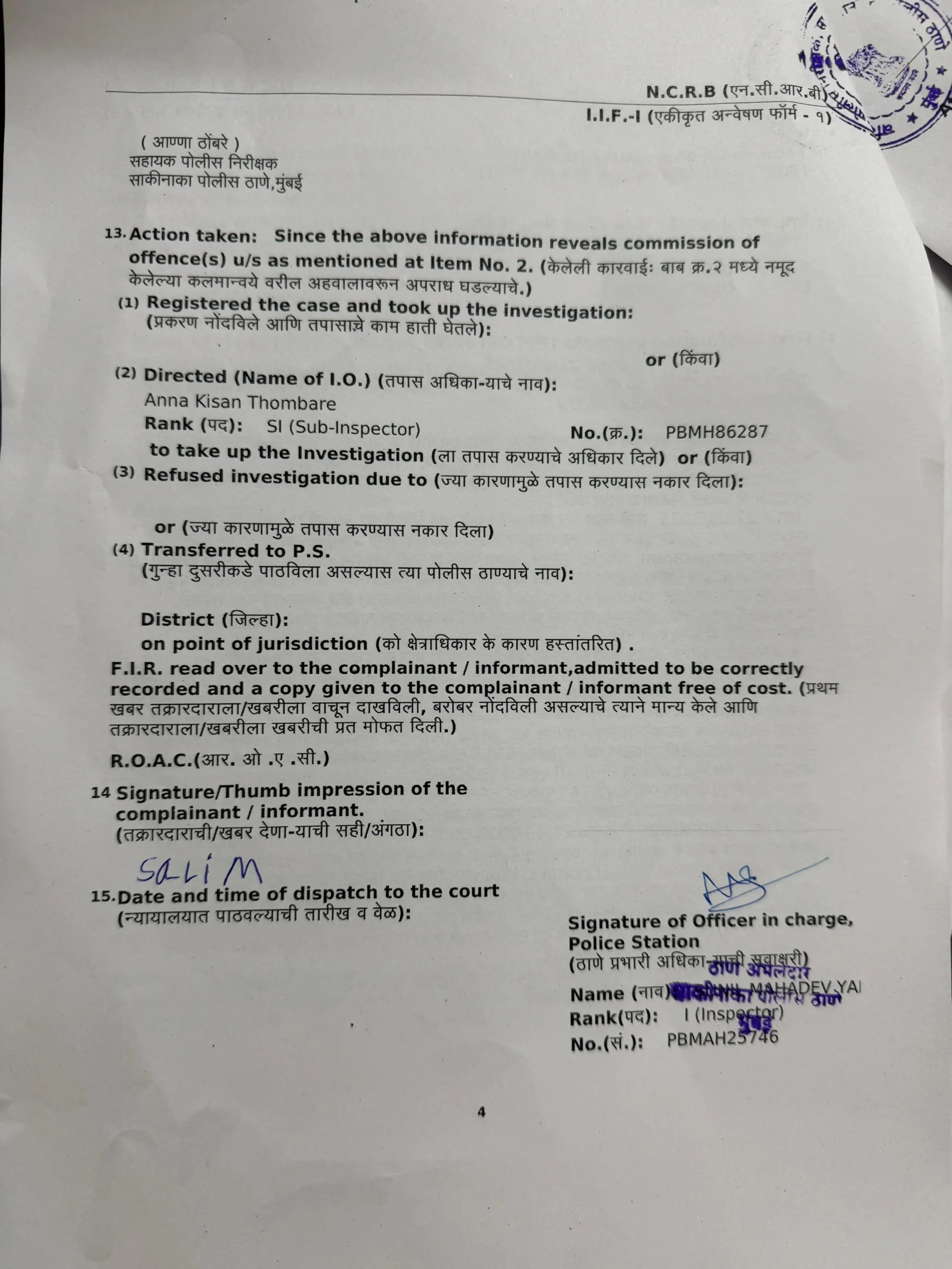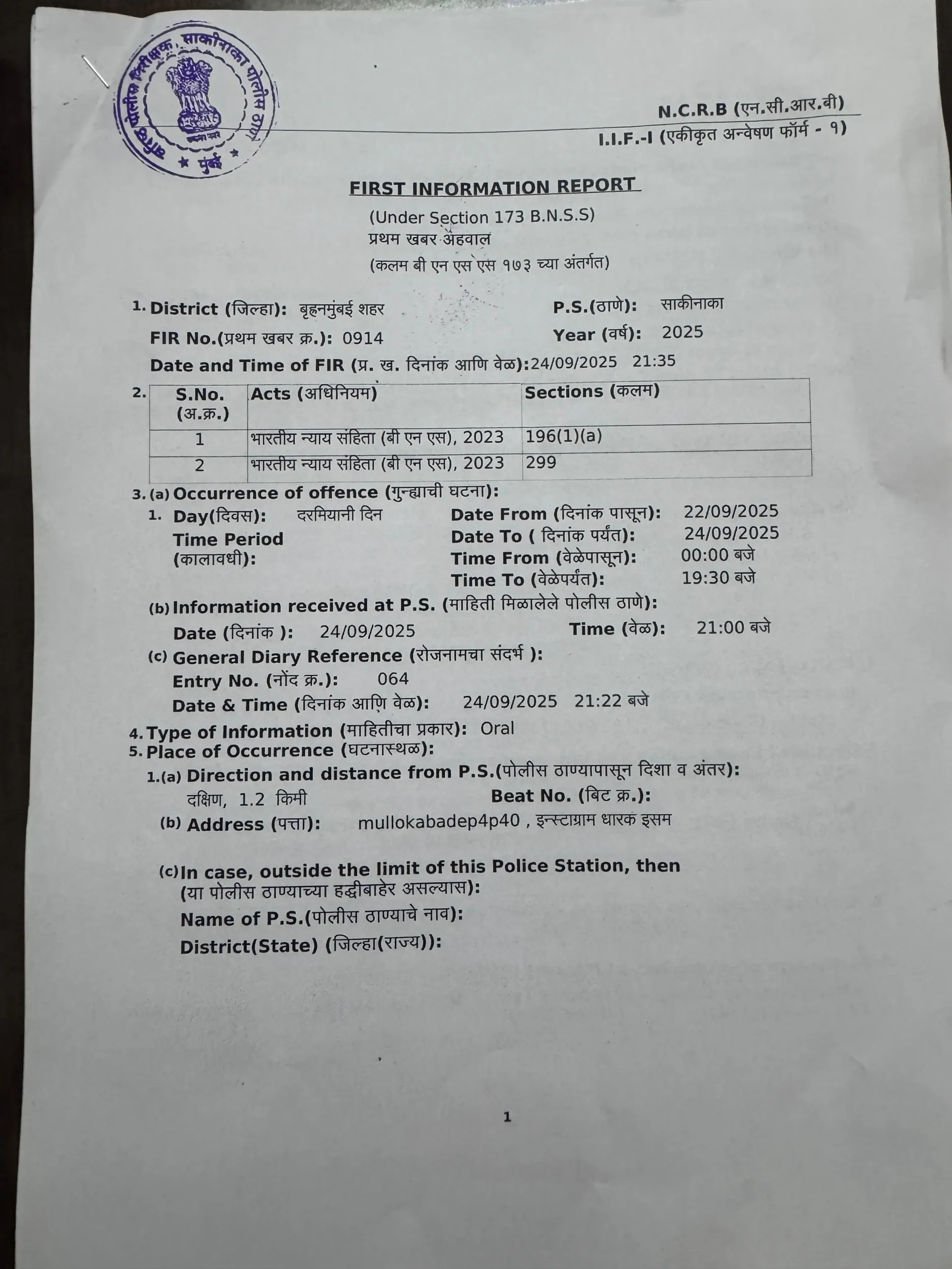 In response to the escalating tensions, senior police officials, including Deputy Commissioner of Police Datta Nalavade, addressed the agitated crowd. Authorities assured the protestors of strict action, which led to a temporary calming of the situation. Shortly after this assurance, the Sakinka police formally arrested Amit Tiwari and registered a First Information Report (FIR) against him. The case has been filed under relevant sections of the Indian Penal Code and the new Bharatiya Nagarik Suraksha Sanhita (BNSS) 2023.