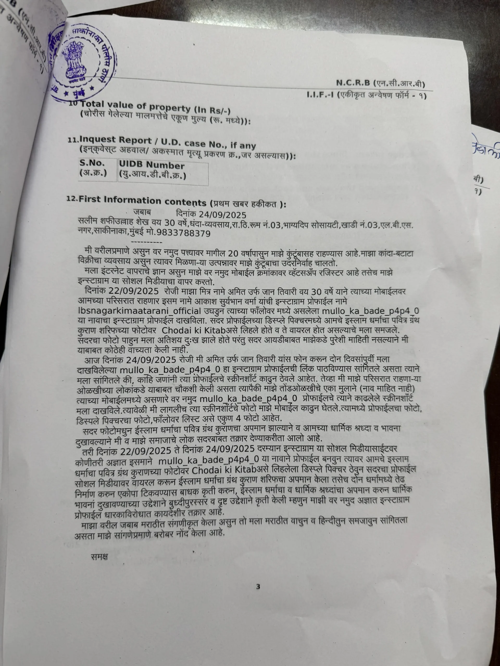 The Sakinka police have registered a case against Amit alias Jaan Tiwari under stringent IPC sections after a viral post sparked protests and raised concerns over communal harmony during Navratri.