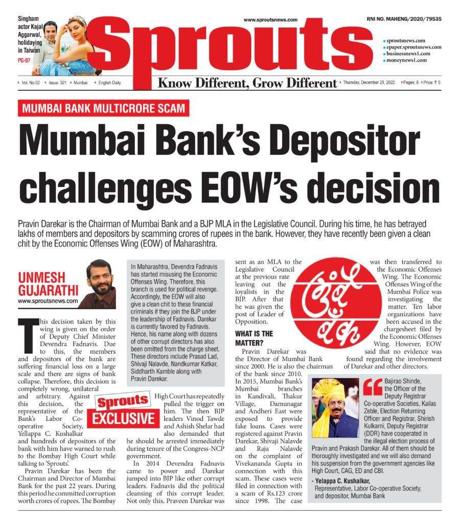 This decision taken by this wing is given on the order of Deputy Chief Minister Devendra Fadnavis. Due to this, the members and depositors of the bank are suffering a financial loss on a large scale and there are signs of bank collapse. Therefore, this decision is completely wrong, unilateral and arbitrary. Against this decision, the representative of the Bank’s Labor Co-operative Society, Yellappa C. Kushalkar and hundreds of depositors of the bank with him have warned to rush to the Bombay High Court while talking to ‘Sprouts’.