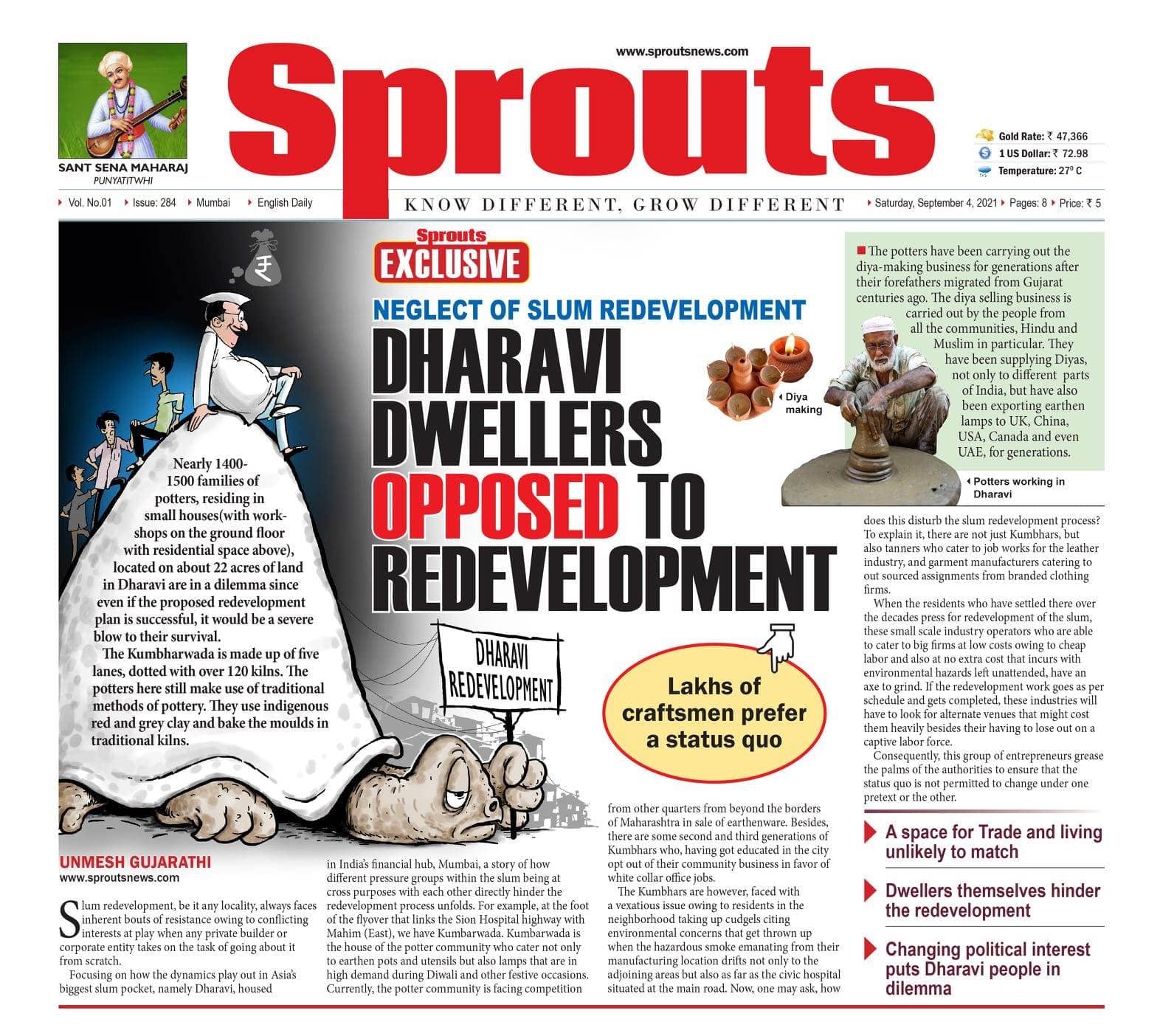 Focusing on how the dynamics play out in Asia’s biggest slum pocket, namely Dharavi, housed in India’s financial hub, Mumbai, a story of how different pressure groups within the slum being at cross purposes with each other directly hinder the redevelopment process unfolds. For example, at the foot of the flyover that links the Sion Hospital highway with Mahim (East), we have Kumbarwada.