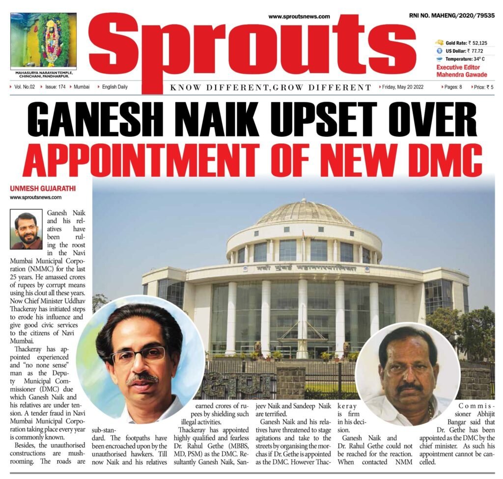 Thackeray has appointed highly qualified and fearless Dr. Rahul Gethe (MBBS, MD, PSM) as the DMC. Resultantly Ganesh Naik, Sanjeev Naik and Sandeep Naik are terrified.