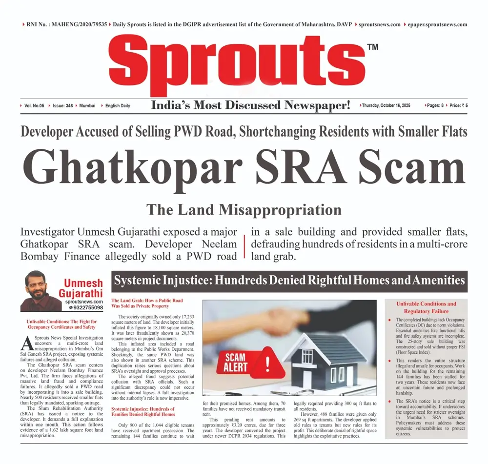 A Sprouts News Special Investigation uncovers a multi-crore land misappropriation in Mumbai’s Om Sai Ganesh SRA project, exposing systemic failures and alleged collusion.