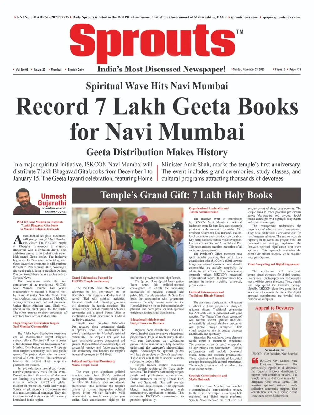 - • Spiritual Wave Hits Navi Mumbai: 7 Lakh Geeta Books for Free Distribution