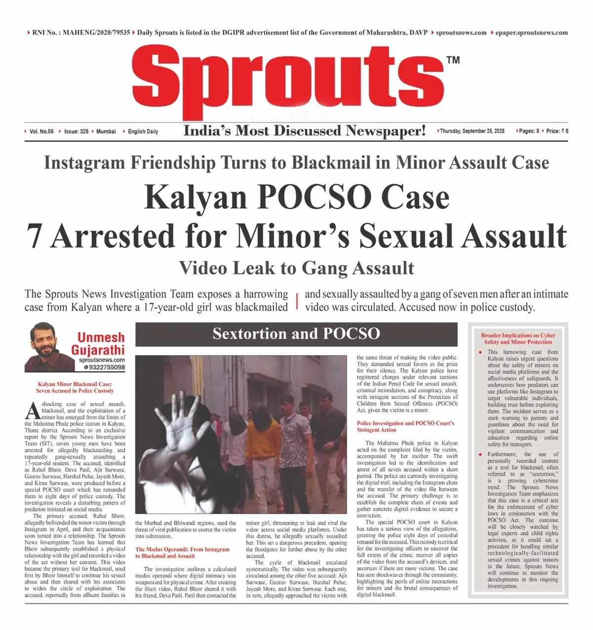 A shocking case of sexual assault, blackmail, and the exploitation of a minor has emerged from the limits of the Mahatma Phule police station in Kalyan, Thane district. According to an exclusive report by the Sprouts News Investigation Team (SIT), seven young men have been arrested for allegedly blackmailing and repeatedly gang-sexually assaulting a 17-year-old student. The accused, identified as Rahul Bhoir, Deva Patil, Ajit Surwase, Gaurav Surwase, Harshal Polse, Jayesh More, and Kiran Surwase, were produced before a special POCSO court which has remanded them to eight days of police custody. The investigation reveals a disturbing pattern of predation initiated on social media.
