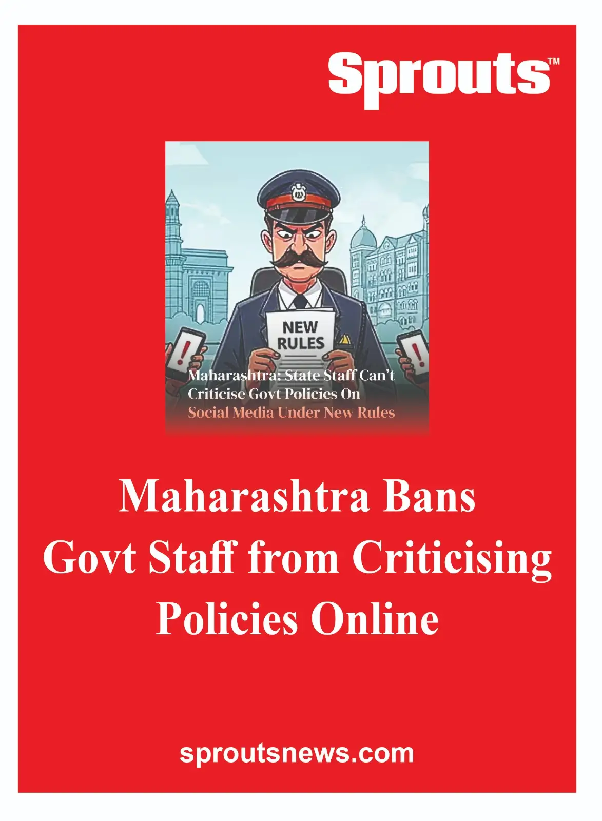 The Maharashtra government has issued a new GR prohibiting state employees from criticising government policies on social media. The directive mandates separate personal and official accounts, bans use of restricted apps, and bars sharing confidential data. Violations will invite action under Civil Services Rules. Sprouts SIT is monitoring the developments.