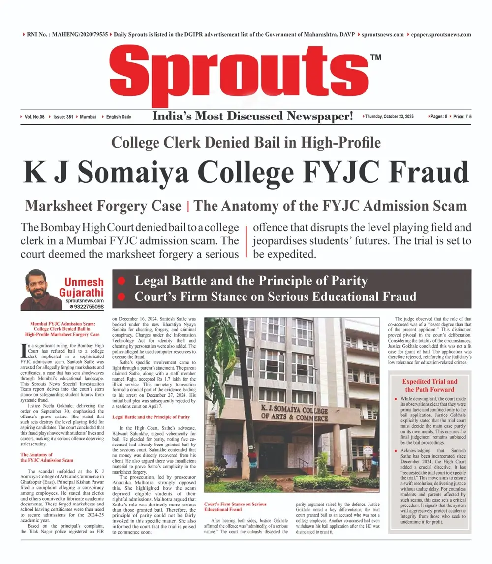 In a significant ruling, the Bombay High Court has refused bail to a college clerk implicated in a sophisticated FYJC admission scam. Santosh Sathe was arrested for allegedly forging marksheets and certificates, a case that has sent shockwaves through Mumbai’s educational landscape. This Sprouts News Special Investigation Team report delves into the court’s stern stance on safeguarding student futures from systemic fraud.