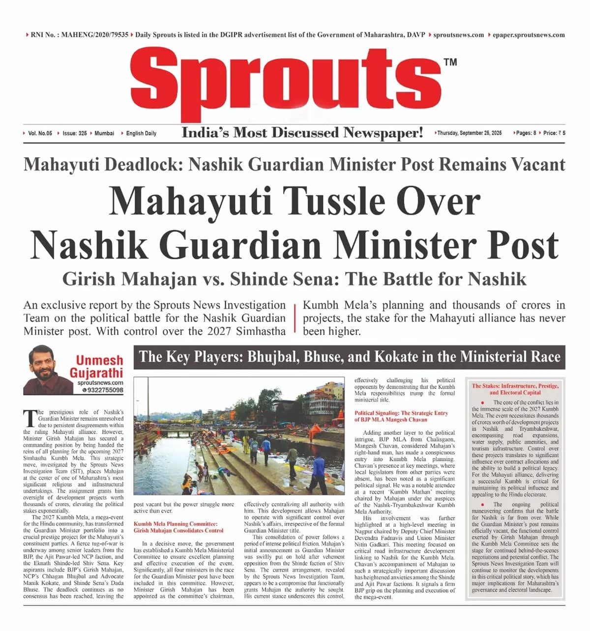The ongoing political maneuvering confirms that the battle for Nashik is far from over. While the Guardian Minister’s post remains officially vacant, the functional control exerted by Girish Mahajan through the Kumbh Mela Committee sets the stage for continued behind-the-scenes negotiations and potential conflict. The Sprouts News Investigation Team will continue to monitor the developments in this critical political story, which has major implications for Maharashtra’s governance and electoral landscape.