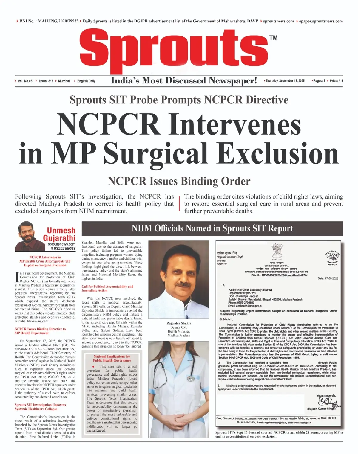 - NCPCR Intervenes in MP Health Crisis After Sprouts SIT Exposé on Surgeon Exclusion