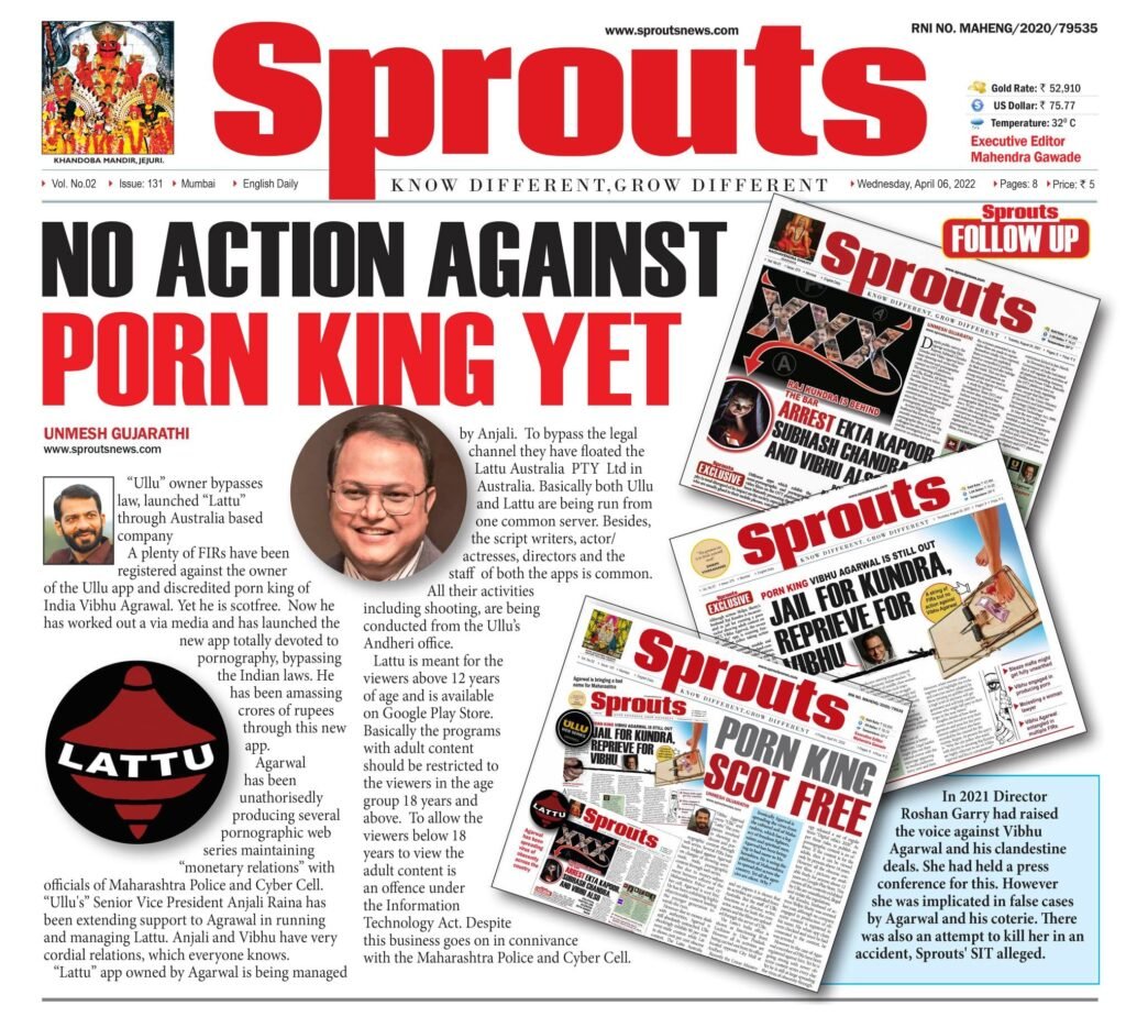 Agarwal has been unathorisedly producing several pornographic web series maintaining “monetary relations” with officials of Maharashtra Police and Cyber Cell. Ullu’s Senior Vice President Anjali Raina has been extending support to Agarwal in running and managing Lattu. Anjali and Vibhu have very cordial relations, which everyone knows.