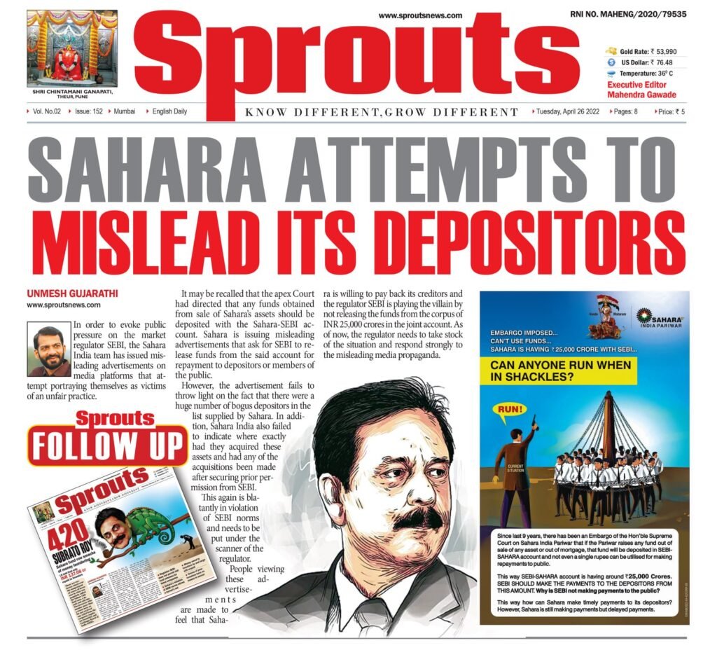 In order to evoke public pressure on the market regulator SEBI, the Sahara India team has issued misleading advertisements on media platforms that attempt portraying themselves as victims of an unfair practice.