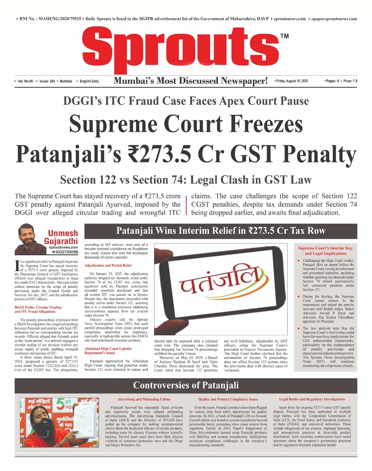•Patanjali Wins Interim Relief in ₹273.5 Cr Tax Row