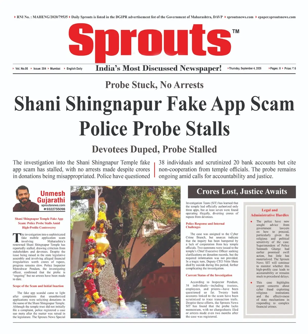 The fake app scandal came to light after complaints that unauthorized applications were soliciting donations in the name of the Shani Shingnapur Temple. Although the temple trust did not initially file a complaint, police registered a case suo motu after the matter was raised in the legislature. The Sprouts News Special Investigation Team (SIT) has learned that the temple had officially authorized only three apps, but at least seven were found operating illegally, diverting crores of rupees from devotees.
