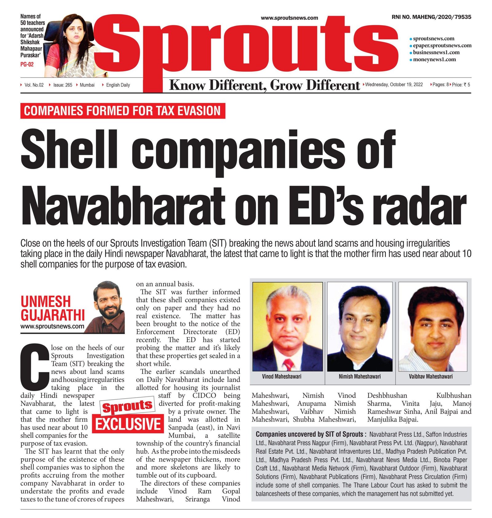Close on the heels of our Sprouts Investigation Team (SIT) breaking the news about land scams and housing irregularities taking place in daily Hindi newspaper Navabharat, the latest that came to light is that the mother firm has used near about 10 shell companies for the purpose of tax evasion.