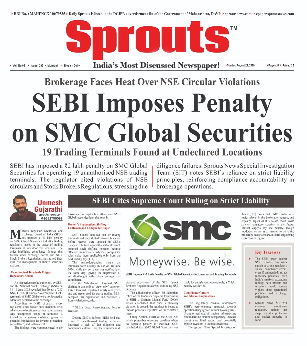 The Sprouts News Special Investigation Team (SIT) notes that SMC Global is a major player in the brokerage industry, and repeated lapses of this nature could invite stricter regulatory scrutiny in the future. Market experts say the penalty, though moderate, serves as a warning to the entire brokerage ecosystem about SEBI’s tightening enforcement regime.