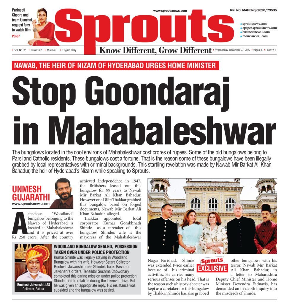The bungalows located in the cool environs of Mahabaleshwar cost crores of rupees. Some of the old bungalows belong to Parsi and Catholic residents. These bungalows cost a fortune. That is the reason some of these bungalows have been illegally grabbed by local representatives with criminal backgrounds. This startling revelation was made by Nawab Mir Barkat Ali Khan Bahadur, the heir of Hyderabad’s Nizam while speaking to Sprouts.
