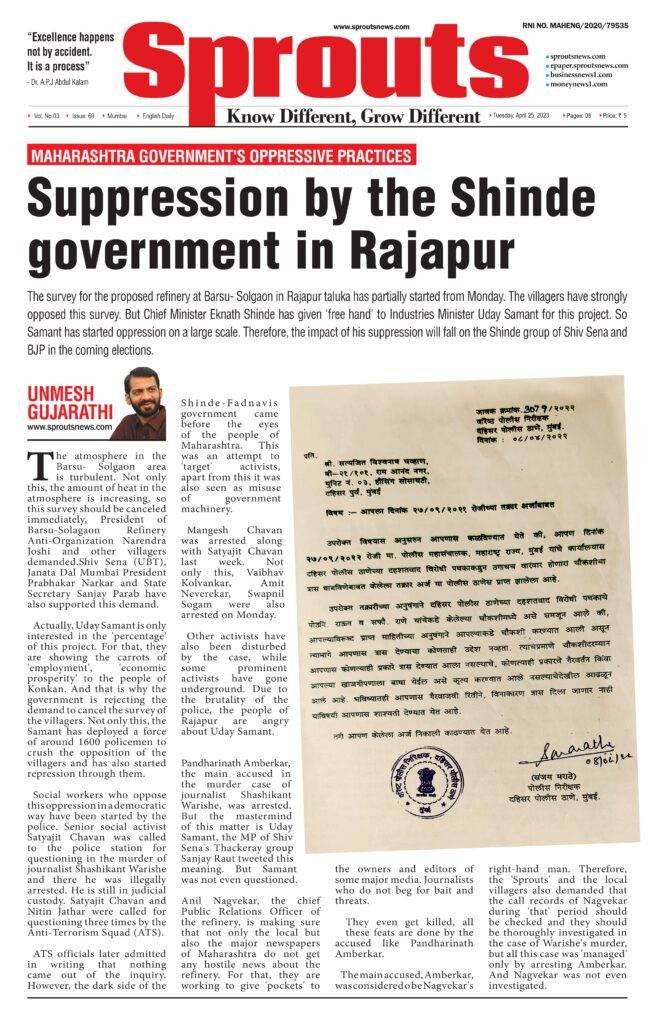 Other activists have also been disturbed by the case, while some prominent activists have gone underground. Due to the brutality of the police, the people of Rajapur are angry about Uday Samant.