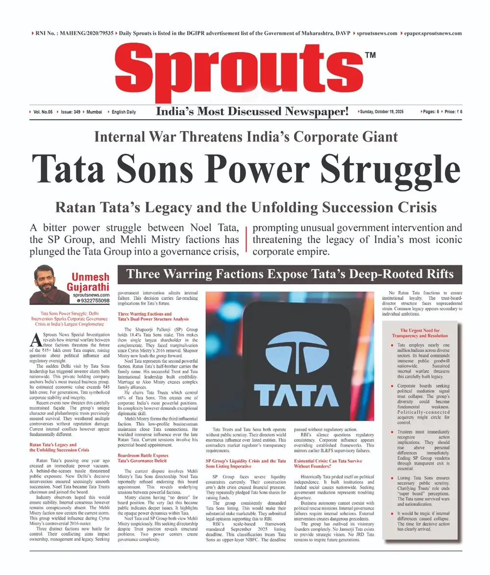 A Sprouts News Special Investigation reveals how internal warfare between three factions threatens the future of the ₹45+ lakh crore Tata empire, raising questions about political influence and regulatory oversight.