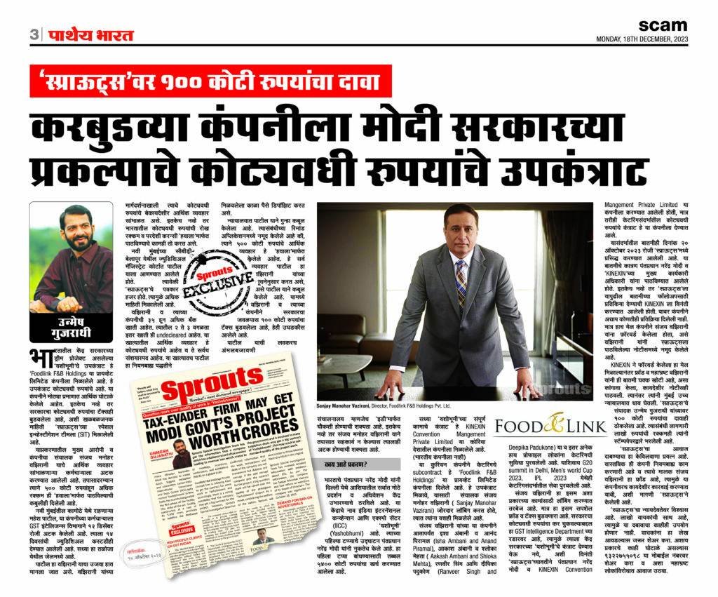 भारतातील केंद्र सरकारच्या ड्रीम प्रोजेक्ट असलेल्या ‘यशॊभूमी’चे उपकंत्राट हे ‘Foodlink F&B Holdings या प्रायव्हेट लिमिटेड कंपनीला मिळालेले आहे. हे उपकंत्राट कोट्यवधी रुपयांचे आहे. या कंपनीने मोठ्या प्रमाणात आर्थिक घोटाळे केलेले आहेत. इतकेच नव्हे तर सरकारचा कोट्यवधी रुपयांचा टॅक्सही बुडवलेला आहे, अशी खळबळजनक माहिती ‘स्प्राऊट्स’च्या स्पेशल इन्व्हेस्टीगेशन टीमला (SIT) मिळालेली आहे.