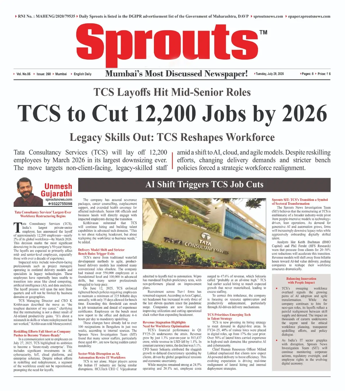 The Sprouts News Investigation Team (SIT) believes that the restructuring at TCS is emblematic of a broader industry-wide pivot from people-intensive models to technology-driven, lean operations. As demand for generative AI and automation grows, firms will increasingly downsize legacy roles while aggressively onboarding digitally skilled talent.