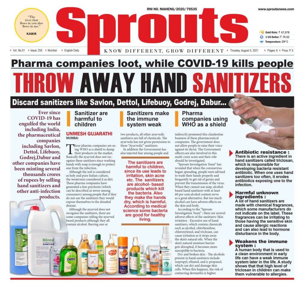 ये फार्मा कंपनियां अपने उत्पादों को बाजार में डंप करने के लिए डब्ल्यूएचओ (WHO) को ढाल की तरह इस्तेमाल कर रही हैं. मूल रूप से आयुर्वेद (Ayurveda) इन सैनिटाइजर्स को मान्यता नहीं देता है क्योंकि साबुन से हाथ धोना किसी को भी संक्रमण से बचाने के लिए पर्याप्त है.