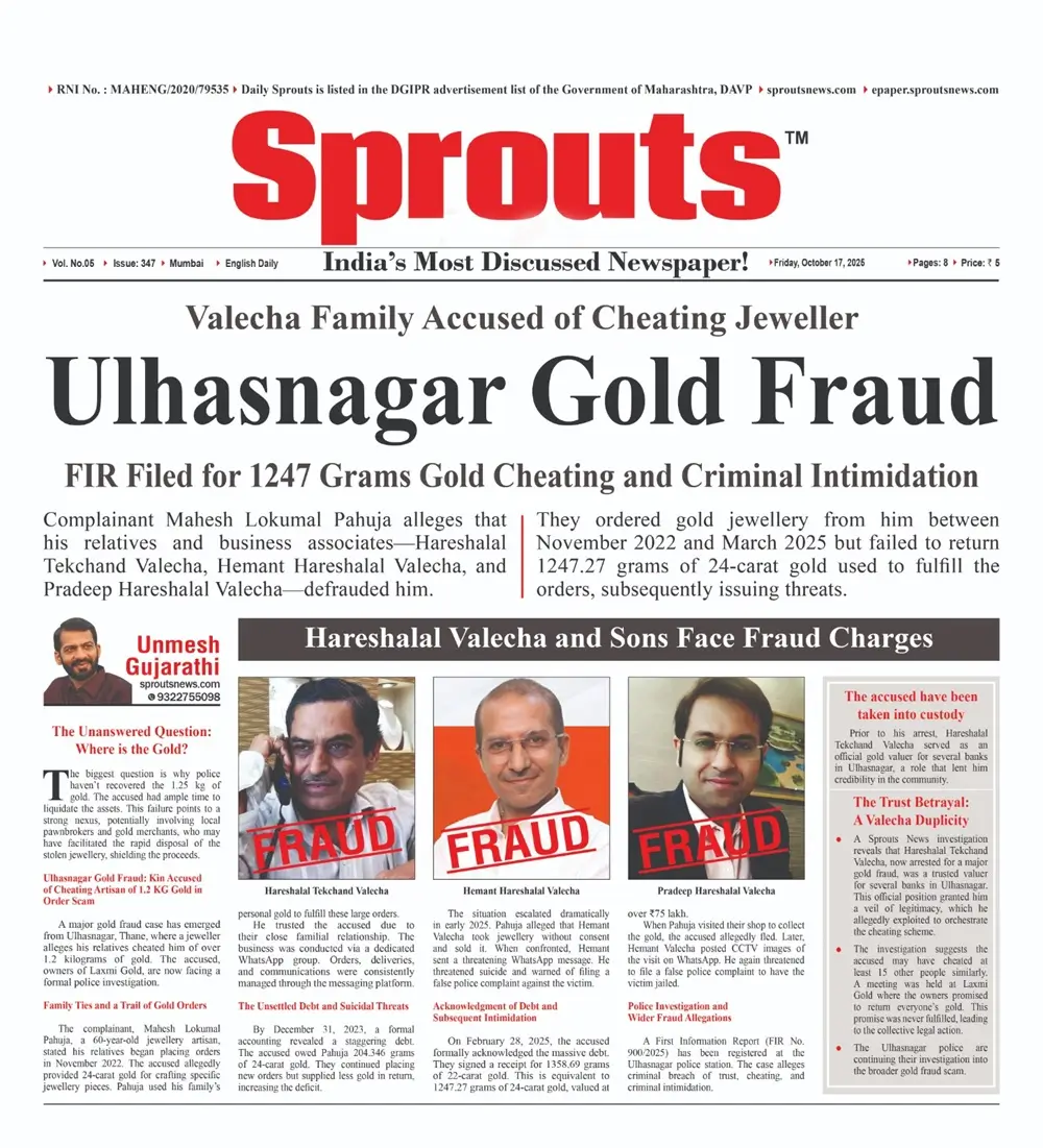A Sprouts News investigation reveals that Hareshalal Tekchand Valecha, now arrested for a major gold fraud, was a trusted valuer for several banks in Ulhasnagar. This official position granted him a veil of legitimacy, which he allegedly exploited to orchestrate the cheating scheme.
