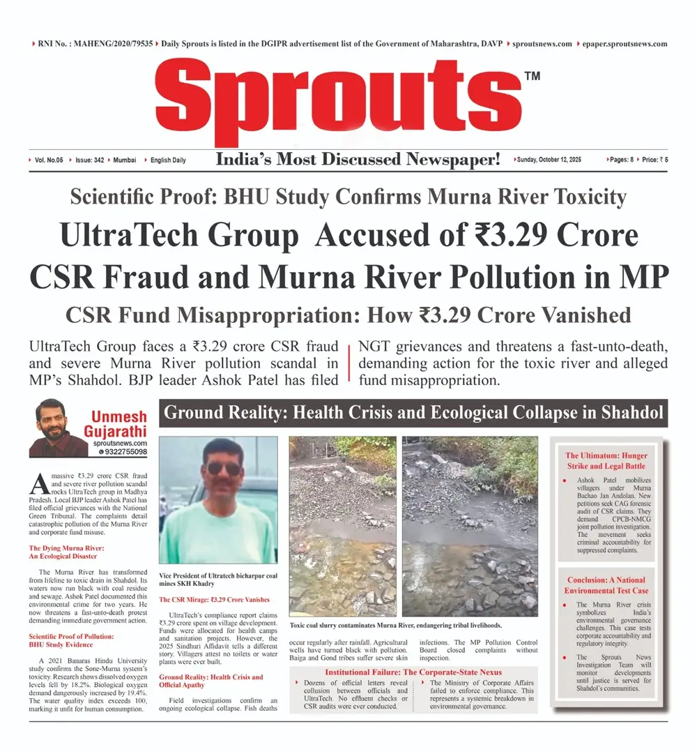 The Murna River crisis symbolizes India’s environmental governance challenges. This case tests corporate accountability and regulatory integrity. The Sprouts News Investigation Team will monitor developments until justice is served for Shahdol’s communities.